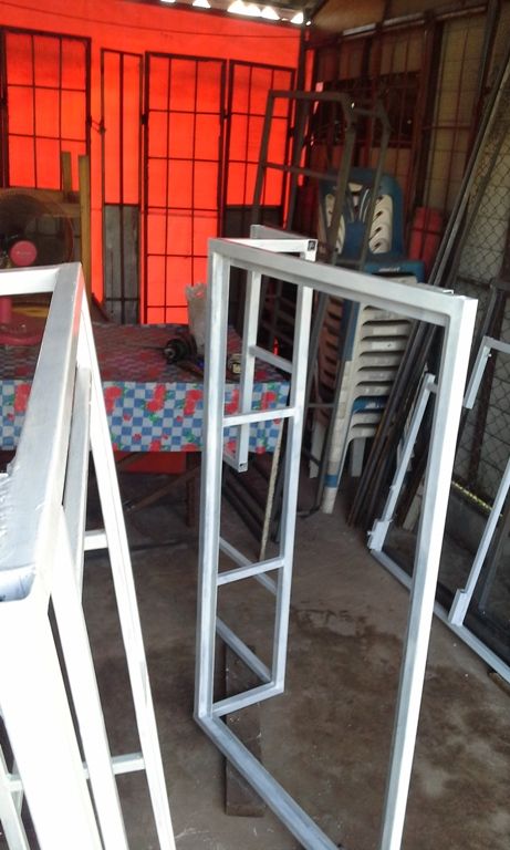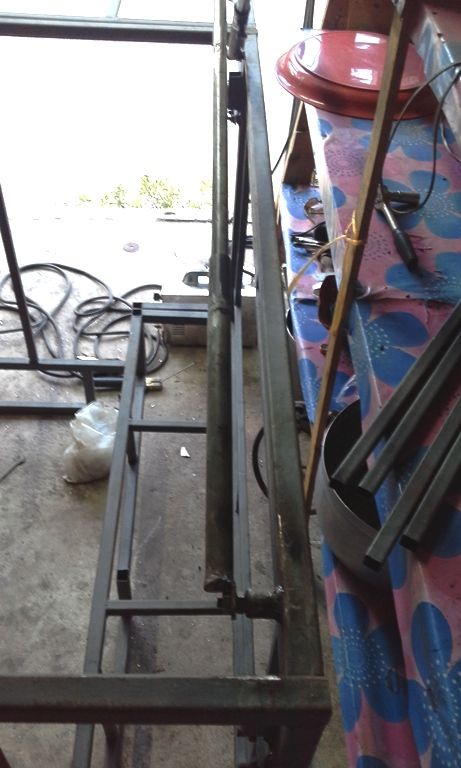 ยกขึ้นมาความสูง 70 กว่าซม. ไม่ติดหัวก็พอได้ล่ะ แต่ทำเหล็กค้ำแบบกากบาด ทำปรับได้ทั้ง 2 ข้าง เลื่อนขึ้น-ลง ได้