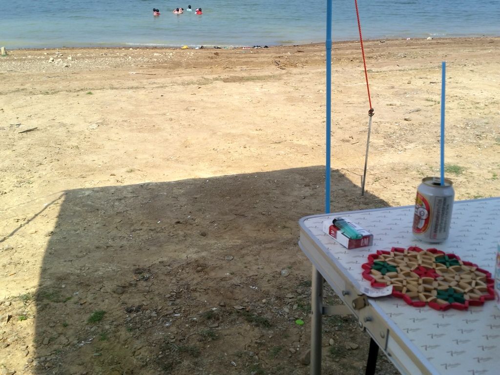 นั่งสักพักแดดเริ่มแรงล่ะ เลยเอาผ้าใบที่ทำไว้ติดโชว์หน่อย 555