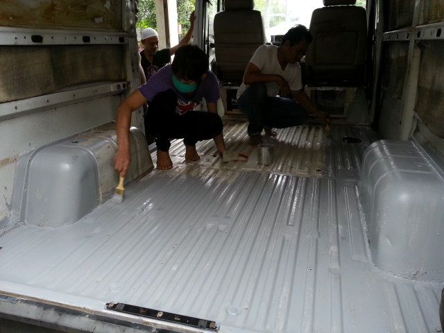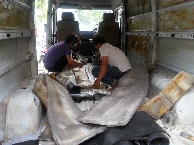 ทาสีกันสนิม และ แปะฉนวนกันความร้อนด้าน ของเดิมติดรถมา