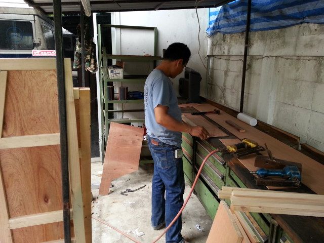 ให้โต๊ยมันตัดตามแบบ"แผงข้างประตู" เพราะของเดิมแช่น้ำมา ไม้เปื่อยหมด