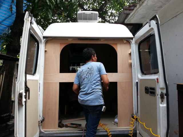 ตอนนี้เริ่มจะขึ้นโครงห้องน้ำแล้วครับ ขนาดห้องน้ำก็วัดจากความรู้สึกผมเอง เอาแบบพอดีๆ เพราะพื้นที่ในรถผมมันเริ่มจะแคบแล้ว555
