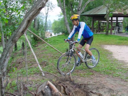 เป็นเส้นทางรอบอ่างเก็บน้ำ ซึ่ง อบต.บางพระ กำลังสร้างทางขี่จักรยานขึ้นมาใหม่ครับ