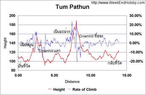 เหมือนเดิมครับ เส้นแดงบอกความสูงตามระยะทาง เส้นน้ำเงินบอกอัตราการขึ้น/ลง ก็มีบางที่ๆเอาเรื่องเลยครับแต่จะเป็นช่วงสั้นๆ