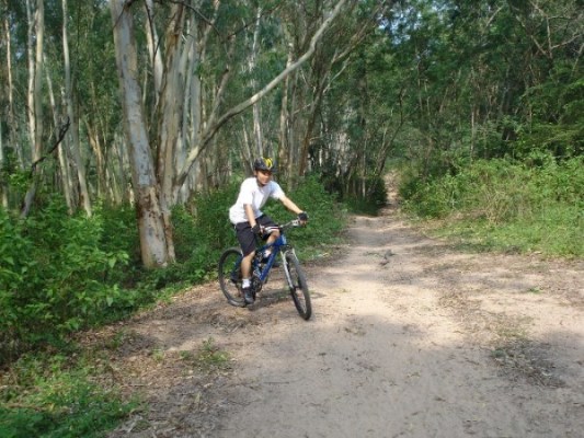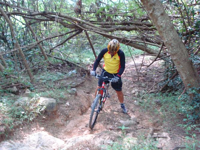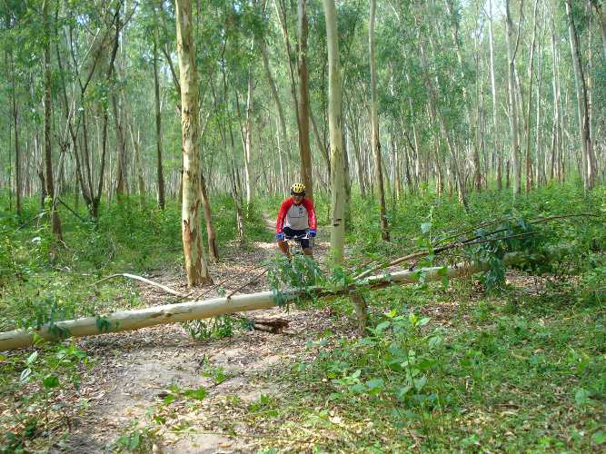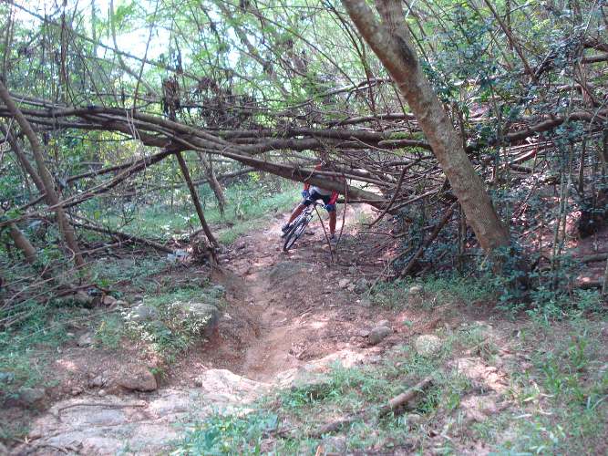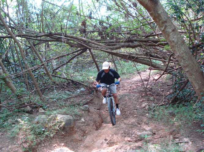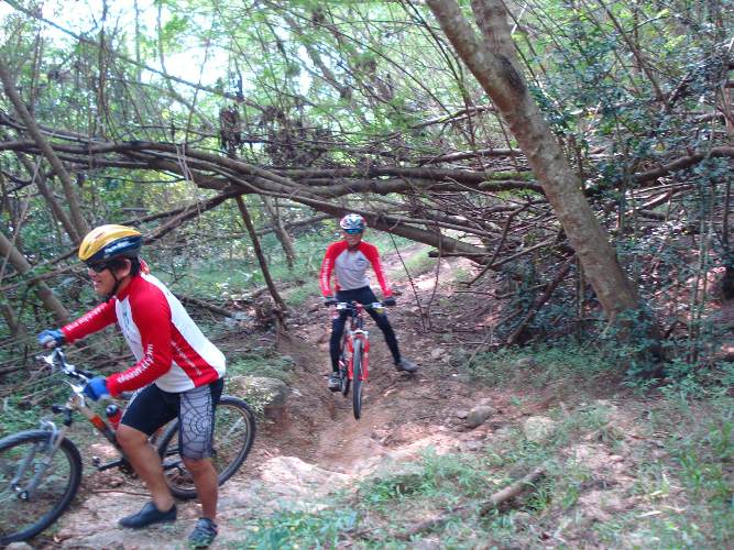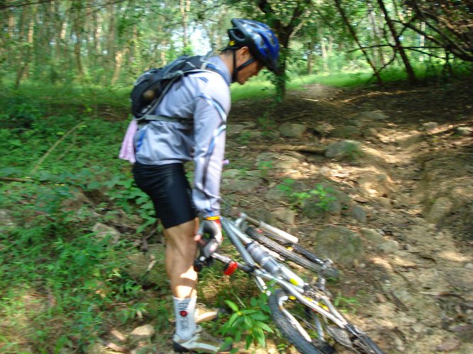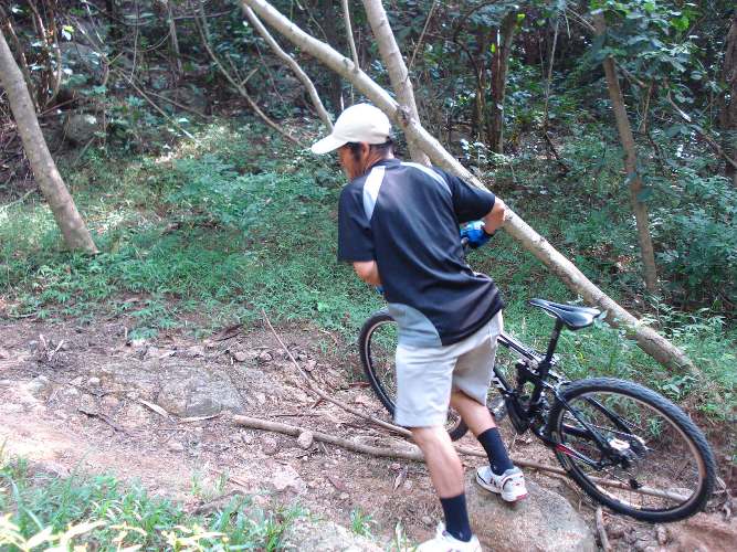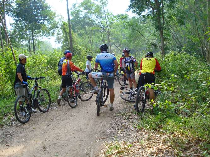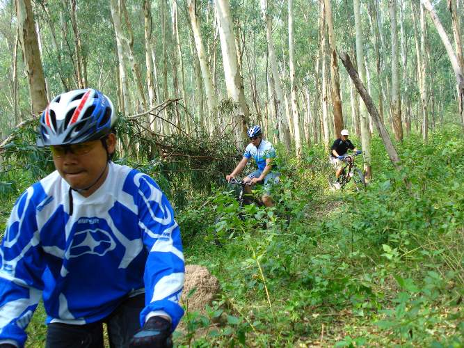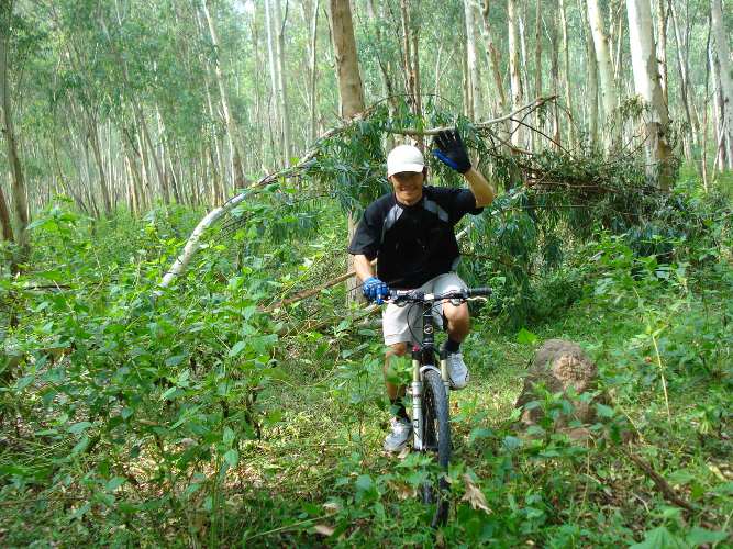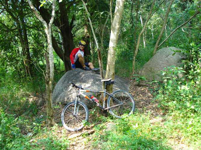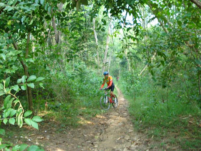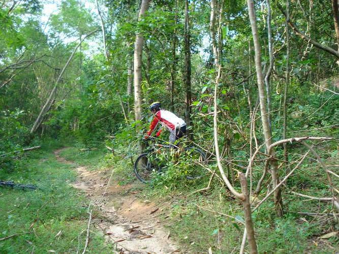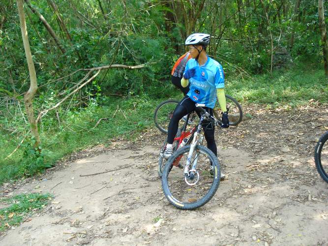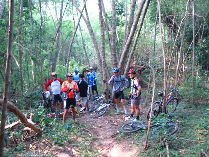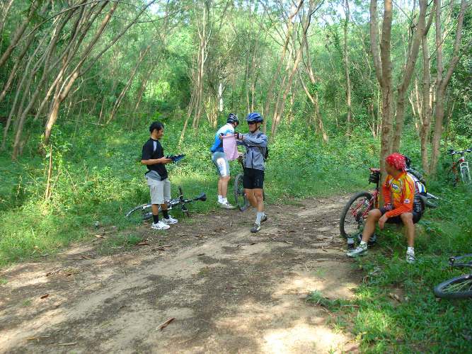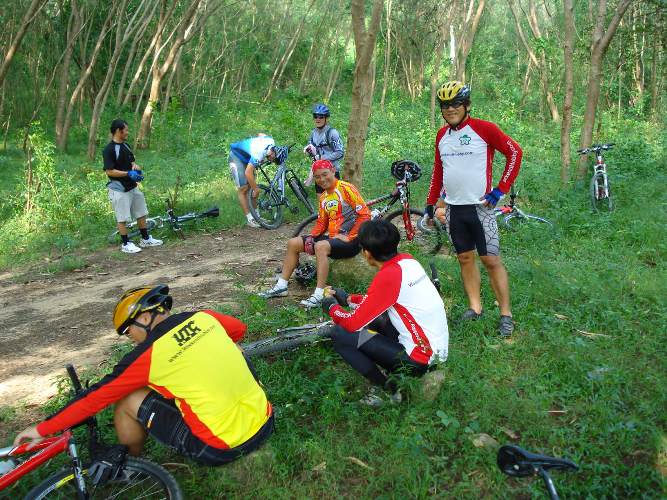 ไปต่อปั่นไล่เสือเขียวมากลางป่ากะว่าจะแซงสักหน่อยดูท่านแรงดีเหลือเกิน รีบเปลี่ยนเกียร์เตรียมขึ้นเนินทำให้โซ่หลุดเข้าเฟืองต้องรื้อซ่อมกันถือโอกาสพักซะเลย