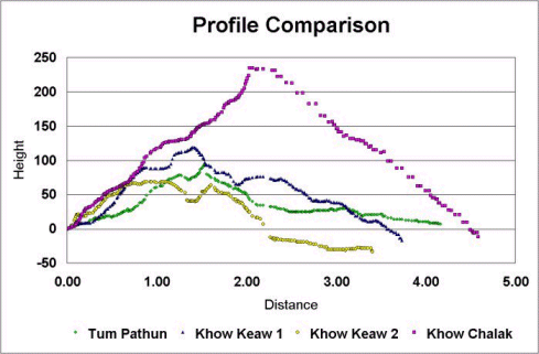 กราฟเปรียบเทียบความสูงของ ถ้ำปะทุน เขาเขียว และเขาฉลากครับ