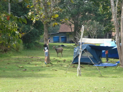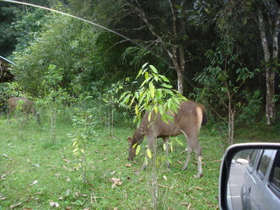 ลานกลางเต้นท์ลำคะคลองมีกวางออกมาโชว์ต้วด้วยตกดีกก็มาลุยหาอาหารข้างๆเต้นท์
