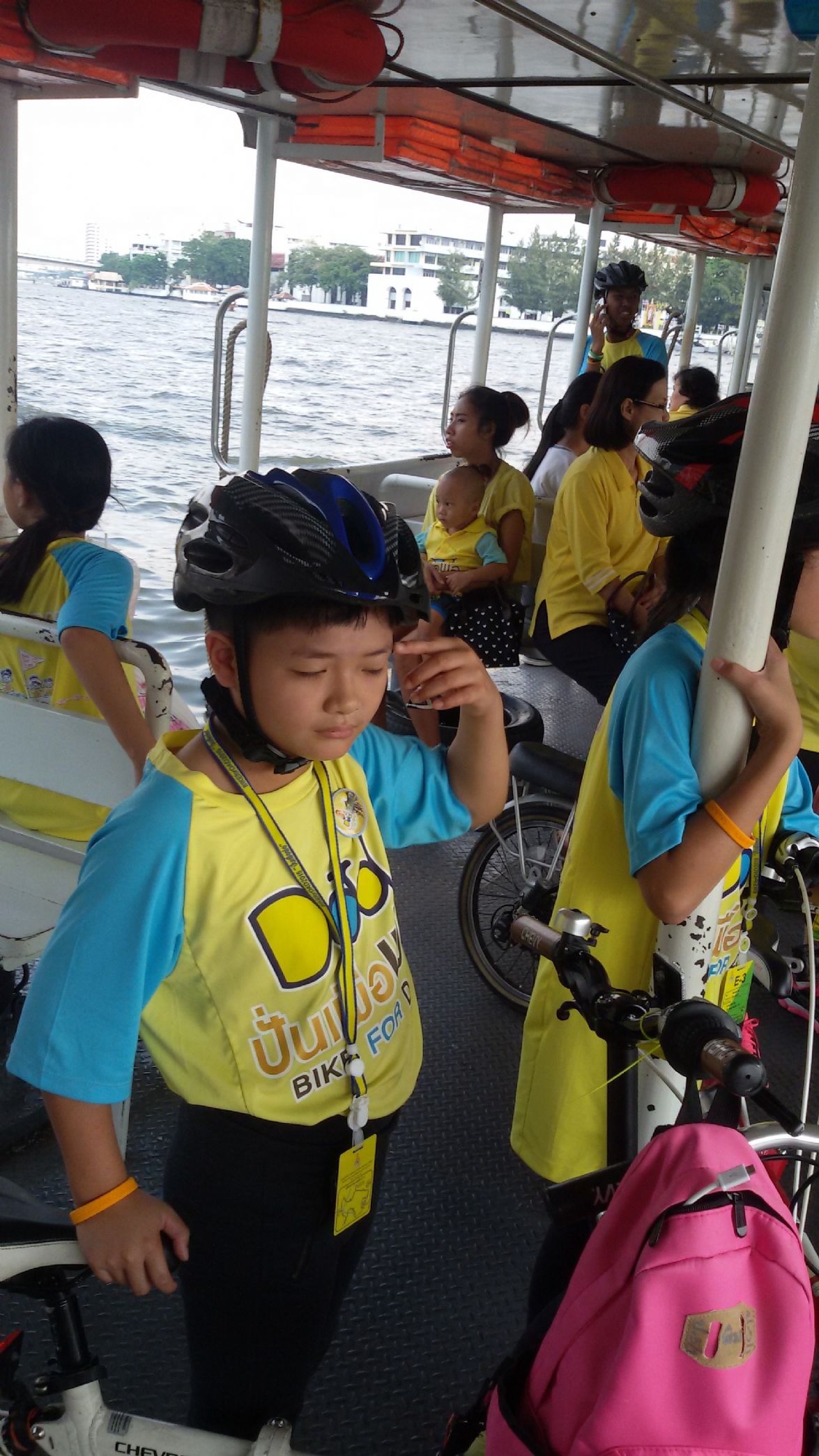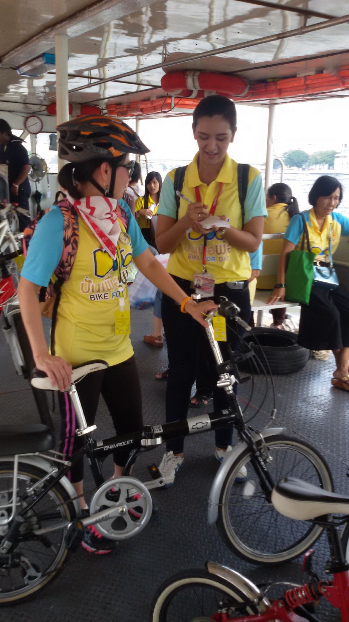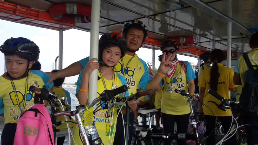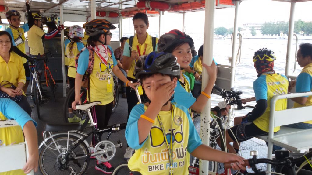ช่วงเอารถข้ามเรือข้ามฟากที่ท่าน้ำ รพ.ศิริราช มีนักข่าวมาขอสัมภาษณ์ความรู้สึกต่อกิจกรรม Bike for DaD