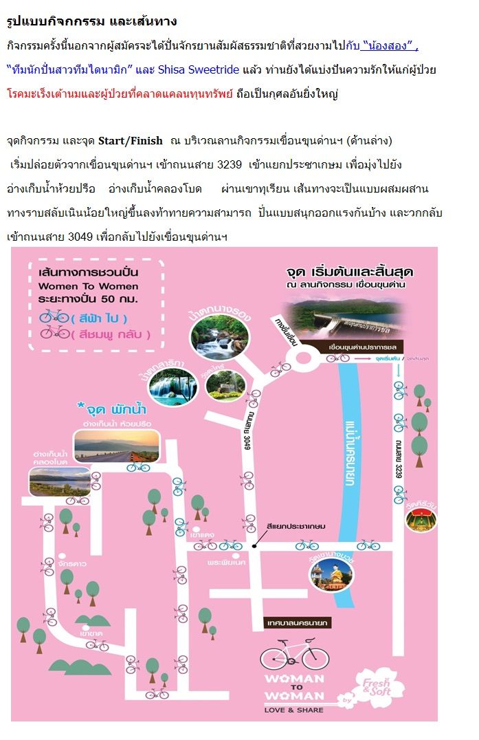 ชวนปั่นกิจกรรมWoman to Woman LOVE&SHARE รายได้ทั้งหมดเพื่อการกุศล ร่วมปั่นกับน้องสองและสาวๆทีมไดนามิกส์เลดี้ ที่เขื่อนขุนด่านปราการชล จ.นครนายก