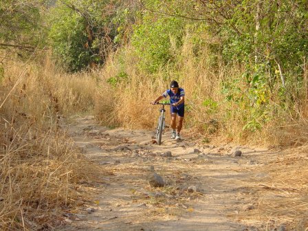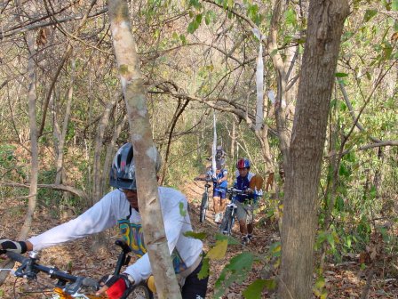 ทางช่วงนี้ ตัดออกนอกเส้นทางแข่งปกติเข้าซิงเกิลแทรก ทางดินชาวบ้าน ขึ้นเนินตลอด มานั่งหอบกันแบบนี้ครับ