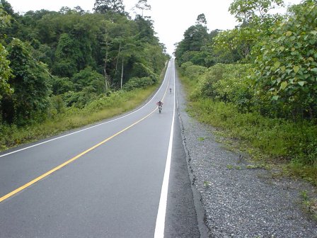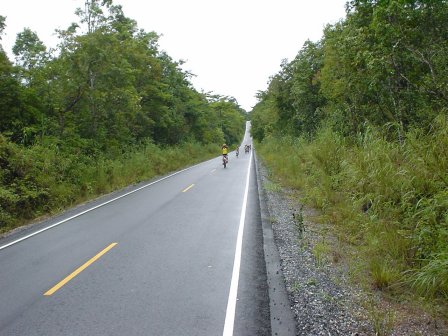 หลังจากเตียมตัวกันพร้อมแล้วเราก้อเริ่มเดินทางกันเลย โดยมีเสือแดง ขับรถ Service และคอยถ่ายรูปให้เป็นระยะ ลุงอ๊อดไม่รอช้าออกตัวก่อนเป็นคนแรก ไปได้ไม่นานลุงอ๊อดก้อเปลี่ยนจากผู้นำเป็นคนปิดท้ายให้ ปั่นไปเรื่อยๆ มีแต่เนินกับเนิน ไม่ชันครับ แต่ยาวไม่เห็นจุดสิ้นสุดเลย ในที่สุดเราก้อพักเติมพลังกัน หลังจากผ่าฟันเนินมาหลายเนิน หลังจากเติมพลังกันจนอิ่ม ลุงอ๊อดก้อออกนำอีกแล้ว แต่เที่ยวนี้เราเริ่มปั่นกันเป็นกลุ่มมากขึ้น เนื่องจากไม่รู้ว่าจะอีกนานไม๊กว่าจะถึง และแล้วเราก้อมาถึงทางสุดยอดแห่งความมัน เป็นทางไหลลงยาวๆ แล้วมีเนินรับ เรียกว่าปล่อยกันแบบสุดๆ ลุงอ๊อดน่าจะสถิติดีที่สุด 69 KM/Hr คนอื่นๆ ก้อประมาณ 60 กว่าๆ ปั่นมาอีกสักพักก้อมาถึงทางแยกไปน้ำตกเหวสุวัฒน์ ช่วงไปน้ำตกทางค่อนข้างสบาย เพราะไหลลงยาวเลย แต่ก่อนถึงน้ำตกนี่สิ เจอจนได้เนินชันๆ นึกถึงเขาฉลากเนินสุดท้ายยังไงยังงั้นเลย จาน 1 นึกว่าจะไม่ได้ใช้แล้วก้อต้องมาใช้จนได้ แต่เราก้อโขกสับกันมาจนถึงน้ำตกจนได้ ไชโย...................