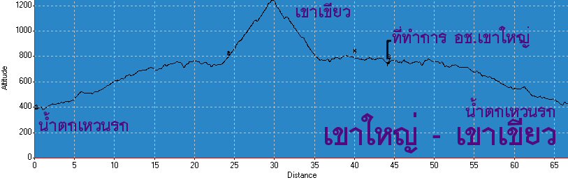 มาดูกราฟความสูงของยอดเขเขียวกันครับ ระยะทางรวม 65 กม.