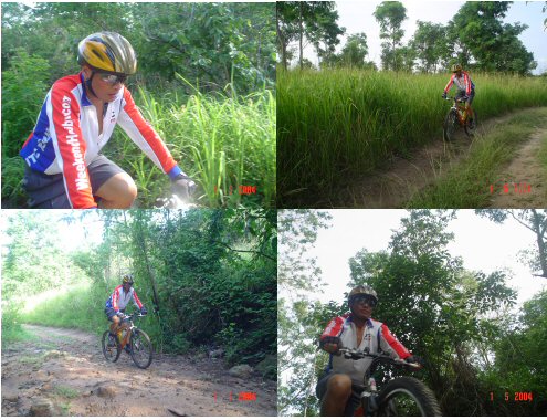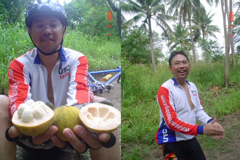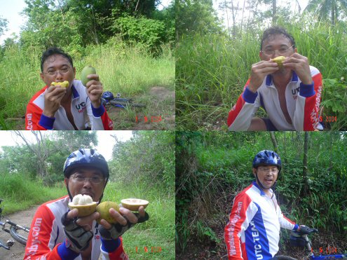 สืบเนื่องจาก กลุ่มเราเป็นกลุ่มที่ขี้ลืมมาก ขี่จักรยานเส้นเดิมทุกอาทิตย์ยังหลง กันได้ ทำให้ผมกับลุงอ๊อด นั่งคอยตรงจุดก่อนดาวฮิวกันนานมาก ประมาณครึ่งชั่วโมง ก็ยังไม่มากันสักที เลยเก็บมะม่วงเก็บกระท้อนกินกันไปรอกันไป สุดท้าย ต้องขี่ขึ้นเขาไปดูว่าเป็นอะไรกัน เราก็นึกว่ายางแตก หรือไม่ก็โขด ขี่ไปถึงยอดเขาไม่เจอใครเลย เลยไหลงลงดาวฮิวกลับมาที่รถ สุดท้าย เพื่อนหนีกลับบ้านไปหมดแล้ว แย่จัง ภาพแรกเนี่ย เก็บมะม่วงปากตะกร้อ กินกันก่อน อร่อยมากกกกก
