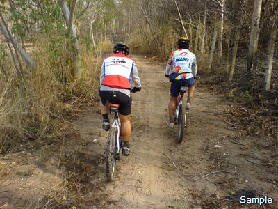 พอถึงแยกนาพร้าว ก็เลี้ยวเข้าไปเลยตรงดิ่งไปเข้าทางทราย ช่วงนี้ ผมก็เริ่มแนะนำเสือเฒ่า ให้ปั่นทางทราย ต้องอย่างงี้ อย่างงี้ มันต้องอย่างนี้สิพี่ Train on doing ไม่รู้พูดแบบนี้ถูกหรือเปล่า 55555