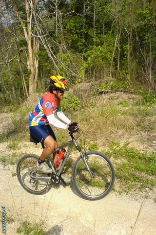 วันนี้ตื่นขึ้นมารู้สึกสดชื่นดี เพราะเมื่อคืนวันเสาร์ได้นอนหลับสบายมาทั้งคืน ผมเริ่มปั่นออกจากบ้านตั้งแต่ 6.50 น. เพื่อไปจุดนัดหมายที่เดิม ลานจอดรถสนามกอล์ฟเขาเขียว โดยปั่นเข้าทางด้านข้าง BSC เพื่อไปเล่นทางทรายสักหน่อยก่อนจะไปออกถนนรอบอ่างเก็บน้ำ เพราะโผล่ถนนรอบอ่าง ผมมองเห็นจักรยานอยู่ด้านหน้าออกไประยะห่างประมาณ 800 เมตร เสื้อเขียวเหมือนเราซะด้วย ตัดสินใจ สปิดไล่ ระยะห่างก็ขยับไปเรื่อย ๆ แต่กว่าจะทันได้เล่นเอาซะเหนื่อย เห็นด้านหลังชัด ๆ ใครหว่า อ้าว พี่โป่งเรานี่เอง เลยชวนไปด้วยกันซะเลย พี่โป่งก็บอก ไม่ได้เข้าไปอ่านในบอร์ด เลยไม่รู้ ไปก็ไป แหมวันนี้ผมตั้งใจจะพาน้องไปแปดริ้วซะด้วย ไว้วันหลังก็แล้วกัน งานนี้สงสัย โดนค้อนหลายรอบแน่ 555