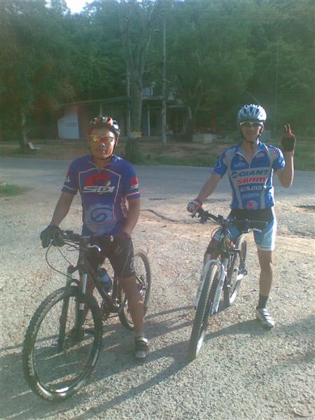หวัดดีครับพี่น้อง เช้านี้ตามที่นัดครับ เสือคมกะเสือสิทธ์มารอผมที่หน้าหมู่บ้าน แล้วก็ปั่นกันไปเขาฉลาก ถึงที่หมายประมาณ 07.04 น. ครับ ไม่เห็นเสิอแป๊ะ สงสัยว่าอยู่ด้านบนแล้ว