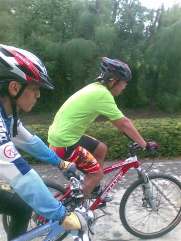 นี่ครับ ไม่ทราบเช่นกันว่านำโด่งหรือรั้งท้าย? จึงมองไม่เห็นใครเลย ตอนวอร์มมีการปั่นขาเดียวโชว์ด้วยนะครับ