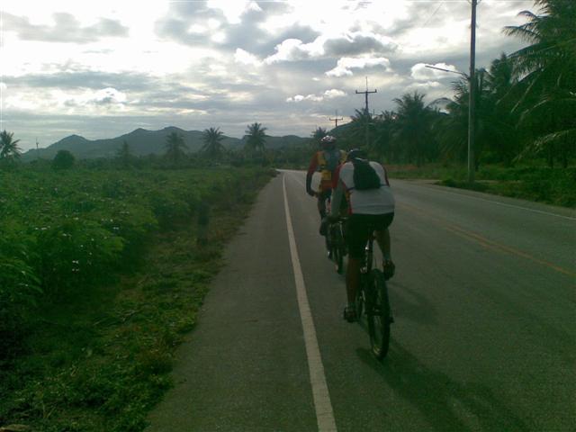 เส้นทางช่วงนี้วิวสวยครับ รถน้อยครับ ทำให้เราปั่นกับอย่างมั่นใจ แต่....เริ่มตึงขากันบ้างแล้วเพราะปั่นกันมาชั่งโมงกว่าๆแล้วยังไม่ได้หยุดพัก(กะให้ถึงวัดเขาไม้แก้วทีเดียว) เส้นนี้มีเนินที่เราทั้ง 3ต้องดันกันพอให้เห็นอาการ คนอื่นไม่รู้แต่ผมเองเริ่มหิวแล้ว