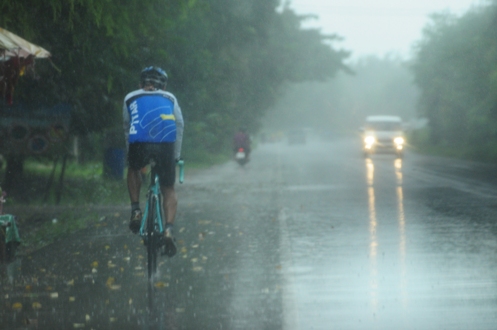 ข้างล่าง ปั่นต่อ... ผมกับ Bianchi กลางสายฝน
