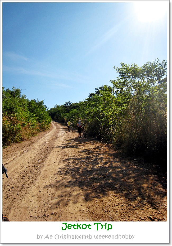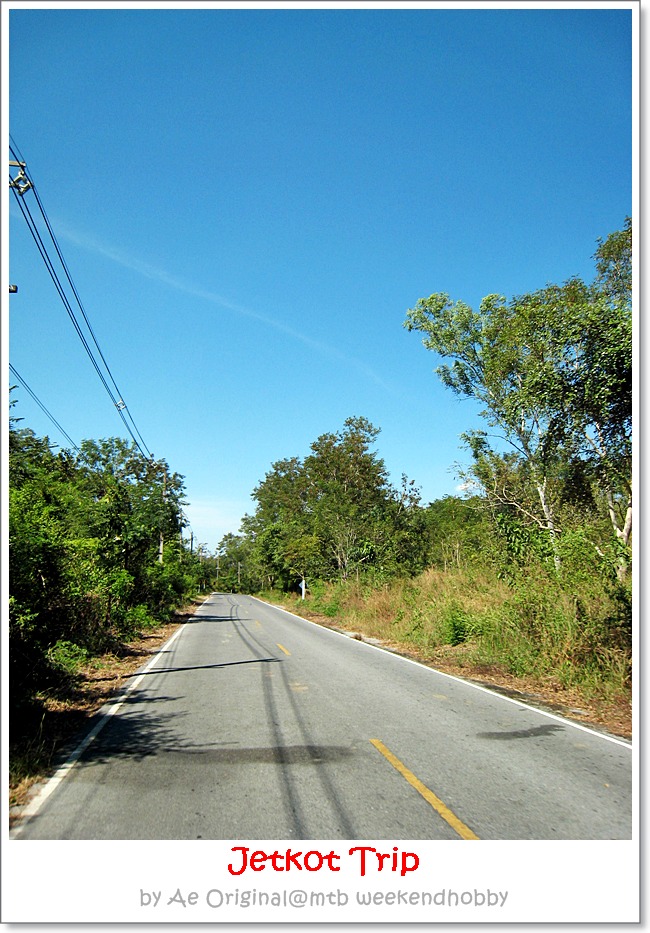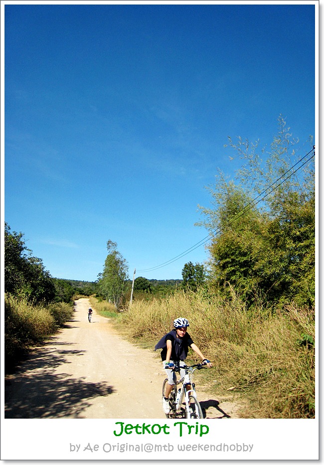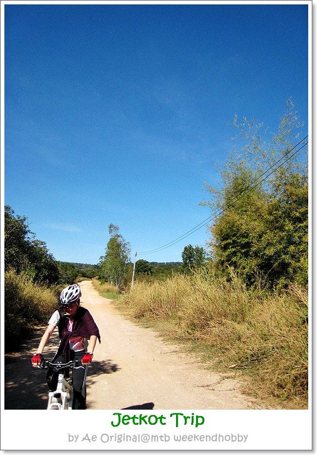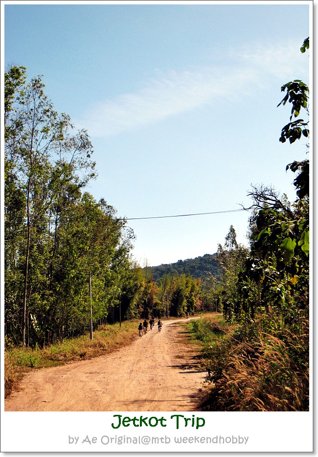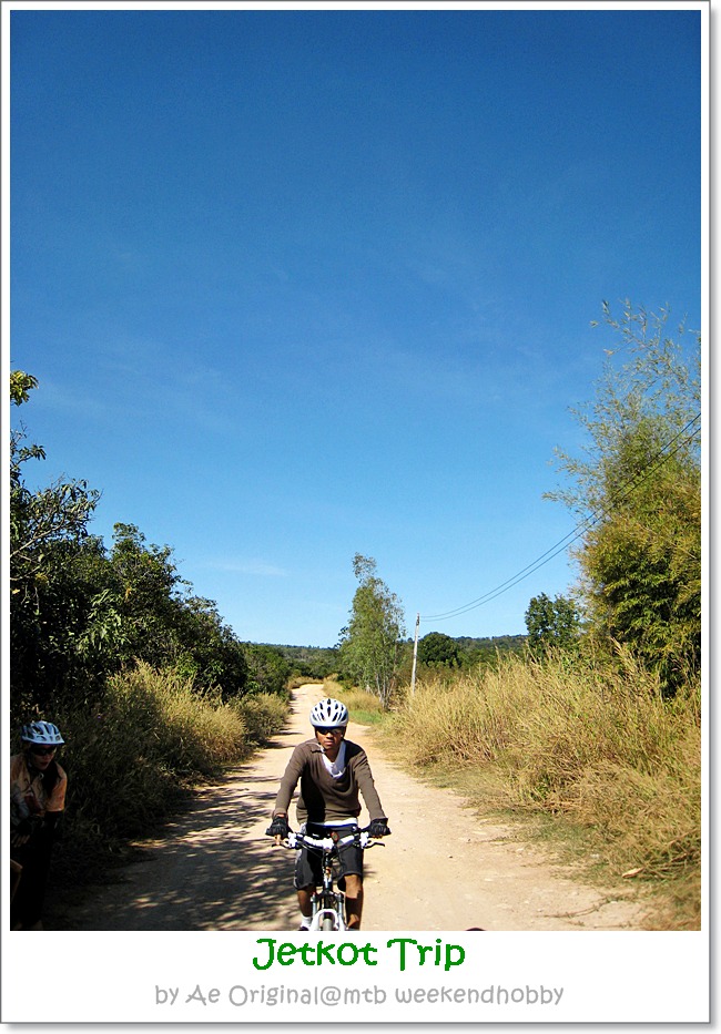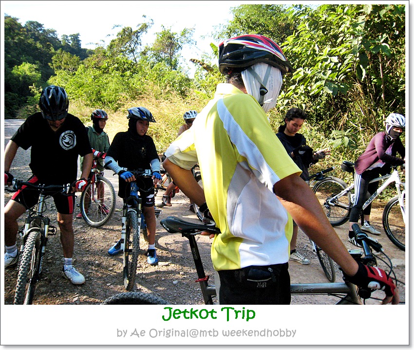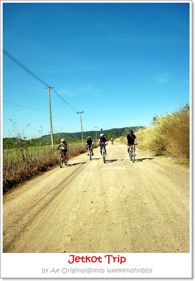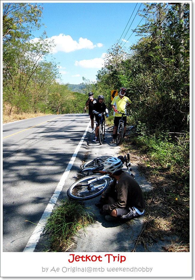 วันนี้รู้สึกได้ว่าทุกคนคึกคักเป็นพิเศษ โกกุยออกตัวทันที "รถผมไม่พร้อมนะ เน้นเรียบๆน๊ะ" อ๊ะก็ได้ฟะ หุหุ เส้นทางเริ่มแรกถูกแปลงใหม่ เจ็ดคตที่หลายคนคุ้นเคย เรายังเก็บไว้สำหรับทริปในช่วงหนาวต่อไป แต่ทริปนี้เราวางเป็นทริปยาว ลัดเลาะจากบ้านดง-ชำผักแพว-มูลนิธิฮูลิน-ถนนบ้านนา-โป่งก้อนเส้า-เจ็ดคต-บ้านดง สิริรวมระยะทาง 42 กม. ระยะทางไม่ไกลเลยถ้าเป็นทางราบ แต่ช่วงจากถนนบ้านนาเข้าสู่โป่งก้อนเส้า จะเป็นทางเนินชันและหินลอย เกียร์ทุกเกียร์จะถูกใช้จนหมด หลายเนินต้องว่ากันที่จาน 1 และเกียร์ 1 เลยเชียว!! หรือบางทีก็ต้องใช้เกียร์ตีนเข้าช่วย(ฮา) ขณะที่ทางลาดยางก็ขึ้นเนินลงเนินตลอดเช่นกัน และความเร็วสูงสุดในตอนลงเนินลิงคือ 60 กม/ชม. มันส์ๆๆๆ สนุกครับทริปนี้ แม้อากาศจะเย็น แต่ยอมรับครับว่าเหนื่อยมากๆ สำหรับมือใหม่หัดปั่นแบบพวกเรา แต่พอถึงจุดหมายก็มีแต่เรื่องขำๆ ให้คุยกัน..ก็บอกแล้ว..เพื่อนตูไม่พร้อมง่ะ 55555
