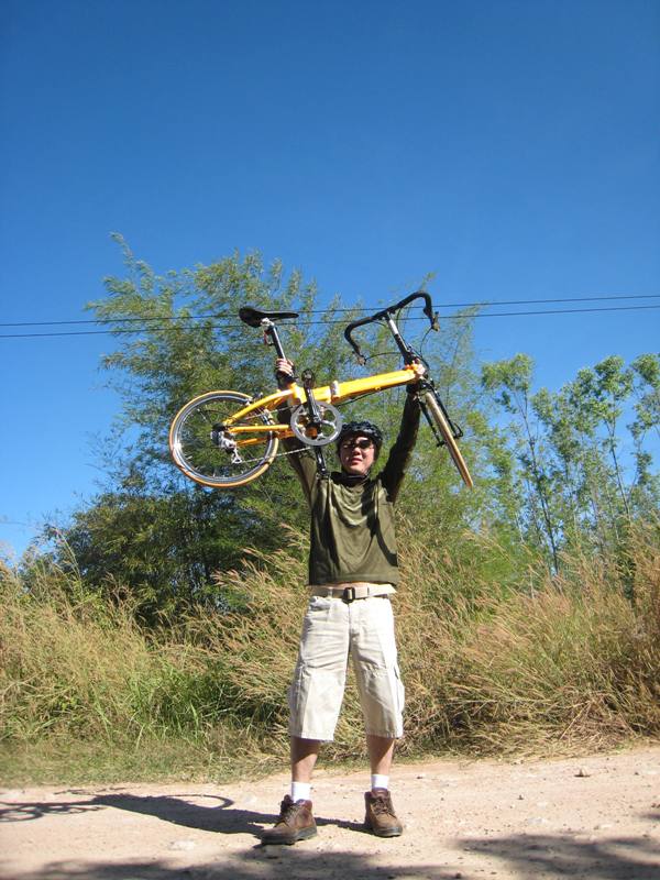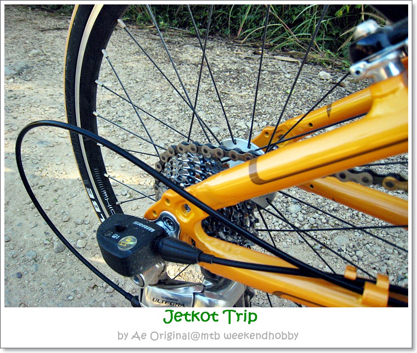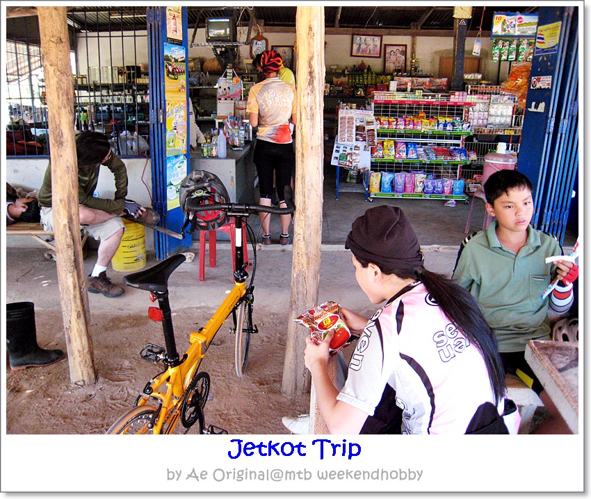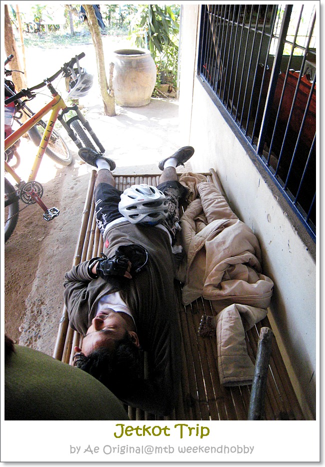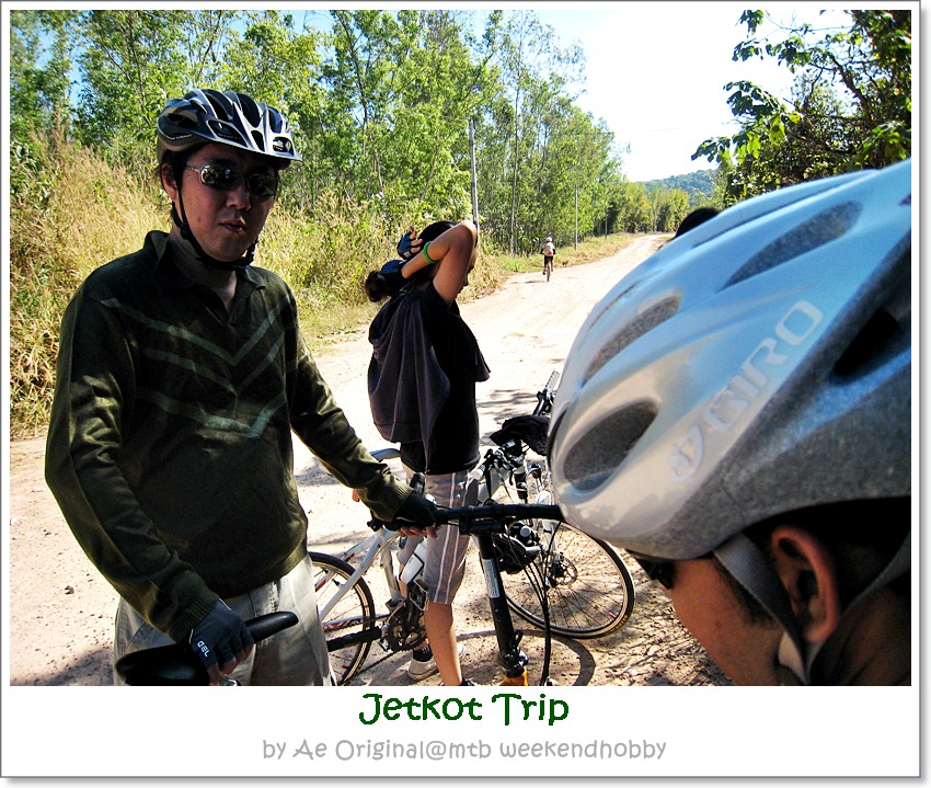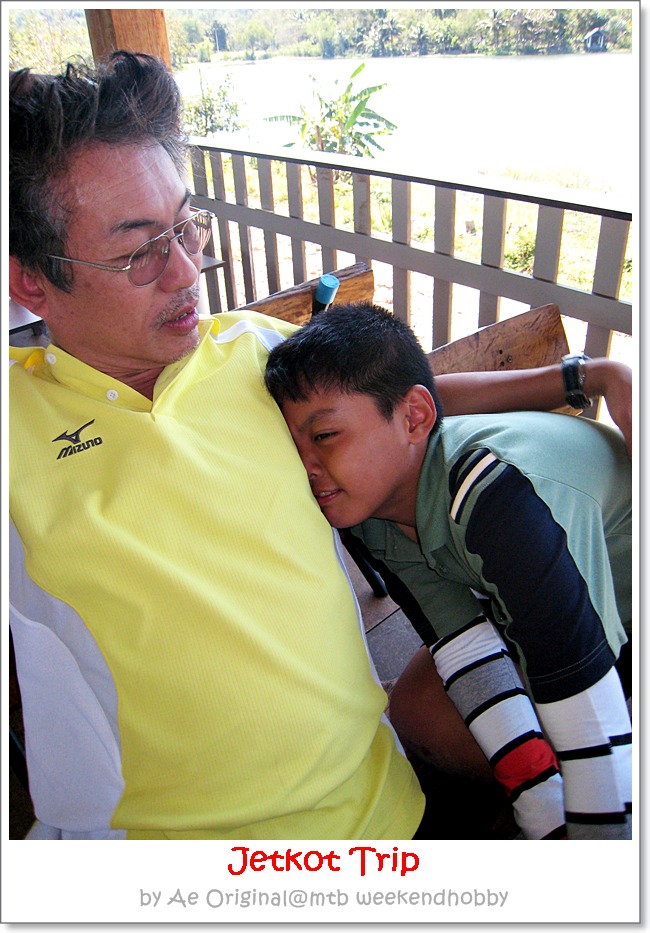 อ่านหนังสือของท่านรพินทรนาถจบเล่ม ผมก็ได้รับโทรศัพท์ชวนจากพี่มาณพ คนที่ผมเรียกคำว่า “พี่” และ “เพื่อน” ได้เต็มปากเต็มคำ แกเอ่ยปากชวนผมไปปั่นจักรยานแถวปากช่อง แต่บังเอิญแม่ยายผมมีบ้านพักผ่อนอยู่แถวเจ็ดคต บวกกับอากาศที่เย็นสบาย ผมเลยเสนอให้พาครอบครัวมาปั่นแถวเจ็ดคตแทน เพราะขี้เกียจโยนเตนท์ ขณะที่เพื่อนอีกหลายคนที่คบหากันมาตั้งแต่เริ่มเปิดเว็บจี๊พยูนิตี้ ที่พอมีเวลาว่างก็ตามมาเฮฮาประสาคนสนิท ไล่เรียงตั้งแต่ “โกกุย” JUC หมายเลข 1 ที่ลงทุนหิ้วรถเทวดา “Dahon Speed Pro” กับ “Dahon Speed” มาปั่นกับเพื่อนๆ เพราะเจ้าตัวบอกว่าที่ซื้อเพราะจะเอาไว้ปั่นกับน้าเอ๋นั่นแหละ (หุหุ ซวยเลยตู ถ้างั้นต้องเริ่มยุให้เล่น MTB เหมือนๆกันดีกว่า แบบว่าเอาคืนหลังจากยุให้เราเล่นปืนมานาน อิอิ) แถมยังชวนเพื่อนเกลอ “หมูตุ๋น และครอบครัว” มาร่วมเฮฮาประสาเพื่อนรู้ใจ แล้วยังเลือกโยนเตนท์ในมุมเย็นๆ หน้าบ้าน ตามติดด้วย “อ๊อด โพธิ์แก้ว” เพื่อนซี้ขาประจำตั้งแต่สมัยเรียน และ “ตุ๊ก เจยูซี” น้องร่วมเว็บที่เต็มสตีมเสมอกับพี่ๆ ได้เหน็บ Wheeler ตัวเก่งมาร่วมปั่นด้วย แถมยังมีเรื่องสนุกๆกับการปั่นตามสวนสาธารณะมาเล่าให้ฟัง ขณะที่ท่านเว็บมาสเตอร์นินจาและครอบครัว ก็เดินทางมาสมทบในช่วงเย็น หลังจากพาครอบครัวไปเป็นนายแบบถ่ายโฆษณาให้กับปั๊มปตท.(อยากเห็นโปสเตอร์วะ อิอิ)
