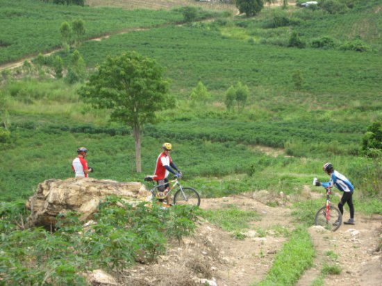 แวะถ่ายรูปหมู่ที่ลานคนเมือง.. และมุ่งหน้าเขานมตั๊ก(เขาเรียกกันแบบนั้นจริงๆ) ดันเนินขึ้นแบบโหดยาวนิดนึง, หินลอยเยอะและชัน.. ถึงยอดเขาก็วนรอบนมตั๊กเอาเคล็ดคนละหนึ่งรอบก่อนลง.. ทางลงก็มันส์ ยาวๆๆๆๆ.. เบ็ดเสร็จก็ 18 กิโลเศษๆ
