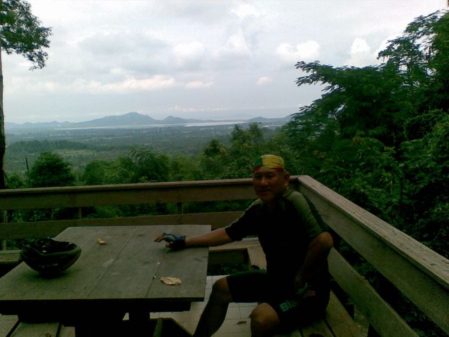 หลังจากพักผ่อนกันพอสมควรเราก็ปั่นดันเนินกลับขึ้นไป แล้วไปยังจุดชมวิวของอุทธยาน(เลี้ยวขวามือ) จุดนี้จะมองเห็นอ่างเก็บน้ำบางพระชัดๆ และมองเลยไปก็มองเห็นทะเลครับ