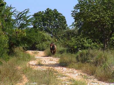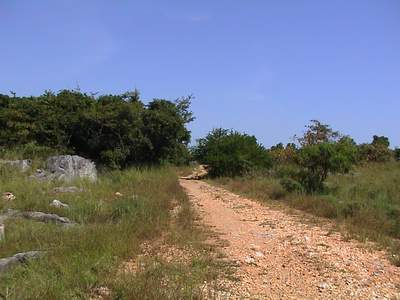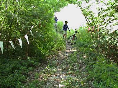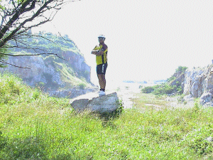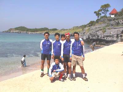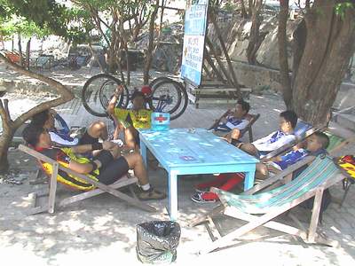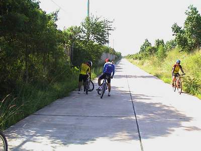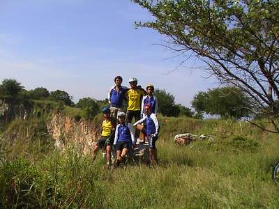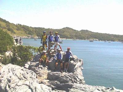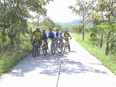 หลังจากขึ้นฝั่งกันหมดแล้ว เราตกลงว่าจะไปเส้นทางเดิมคือมุ่งไปยัง ศาลเจ้าพ่อเขาใหญ่ก่อนแล้วก็จะไปตามทางเรื่อย ๆ ถ้าเจอทางไหนที่น่าสนใจเราก็ตัดเข้าไปสำรวจกัน เริ่มแรก เนฯ ของเรา Pig Fly นำไปก่อน ทั้งๆ ที่ไม่เคยมาปั่นบนเกาะนี้ ได้เรื่อง ครับ เนฯ พาเลี้ยวตัดทางลัดไป ก่อนเลย แต่ก็ไม่มีใครปริปาก เพราะวันนี้เรามาแบบ ถึงไหนถึงกัน อิอิ ปั่นไปสักพักผมก็คอยสอดส่องหาเพื่อนเก่าบนพื้นถนน เจ้าหมื่นขางัยครับ วันนี้หายไปไหนกันหมด กำลังเพลิน ๆ เสียงป๋าริมอ่าง (วันนี้ใส่กางเกงไข่นุ้ย) บอก ทางนี้ไปไหน ไอ้ .... ไปสำรวจหน่อยสิ ได้เลยผม นำขึ้นไปก่อนเลย ทางจะเป็นถนนเรียบแคบ ๆ ข้างทางจะมีกิ่งไม้ยื่นออกมาเกะกะ และก็ชันมากพอสมควร ผมไปถึงบนสุดก็เจอ ศาล ตั้งอยู่ กำลังสอดส่องหาลู่ทางต่อ ป๋าริมอ่างก็ตามมาถึง มีทางลงไปได้อีก ผมกับป๋า ตัดสินใจว่าจะลองลงไปดู ก็เลยตะโกนตาม กลุ่มข้างล่างให้ขึ้นมา เฮ้ยมี Condom ด้วยโว้ย เสียงป๋าฯ บอก อย่างนี้ต้องลองลงไปดูสักหน่อยว่าข้างล่างมีอะไร ว่าแล้ว ป๋าก็เดินลงไปสำรวจก่อน สักพักกลุ่มข้างล่างก็ขึ้นมาถึง ป๋าบอกว่าข้างมีทางลงไป จะลงไปดูกันหรือเปล่า ทุกคนตกลงว่าลงหมด ก็เลยลงไปกัน ทางลงจะชันมาก และมีโค้งหักศอก มีร่องรอยล้อรถทั้งจักรยาน และมอเตอร์ไซต์ ลงไป เสือน้อยเรามาพลาดตรงโค้งหักศอกแต่ไม่ได้รับบาดเจ็บอะไรเมื่อมาถึงข้างล่างทางก็ตัน แต่มีบันไดให้คนเดินลงไปข้างล่าง เสือกลิ้ง มุดรู เฮ้ย มุดลอดใต้ต้นไม้ลงไปคนแรก สักพักหนึ่งก็ขึ้นมาบอกว่า เป็นจุดชมวิว สวยงามมาก น่าลงไปถ่ายรูปกัน เราก็เลยมุดรู เฮ้ย! ไม่ใช่ มุดลอดต้นไม้ลงไปกันหมดเพื่อไปถ่ายภาพเป็นที่ระลึกกัน เมื่อมุดกลับขึ้นมา เสียง Pig Fly บอก หมามุ่ยเพียบเลย ทุกคนต่างมองหารอบตัวกัน เพราะ ชื่อนี้ แค่ฟังก็คันแล้ว นั่นไงเจอแล้ว กำลังเป็นฝักใกล้จะแห้งแล้วด้วย โชคดียังไม่ถึงช่วงที่มันฟุ้งกระจายตามลมหนาว พี่เสือหวานเราเลยได้โอกาส เห็น หมามุ้ย ครั้งแรกด้วย แต่เสียดายที่ยังไม่ได้เห็นตอนที่มันเป็นดอก ซึ่งจะสวยงามมาก แต่เมื่อแก่เป็นฝักแห้ง แล้วฟุ้งกระจายตามลมหนาวเมื่อไหร่ แค่คิดก็คันยิก ๆ แล้ว ไปดีกว่า
