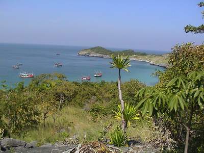 เวลาผ่านไป ประมาณ 50 นาที เรือก็มาถึงเกาะสีชัง เรามองไปบนฝั่งก็ต้องแปลกใจ ทำไม่ถึงมีขบวน รถจักรยานยนต์ สามล้อเครื่อง มารอรับ เต็มไปหมด ใครที่จะมาเที่ยวที่นี้ ไม่ต้องกังวลว่าจะหารถรับจ้างนำเที่ยวไม่ได้ รับรองได้ว่าไม่ต้องหา แค่คุณก้าวเท้าขึ้นฝั่ง เท้าคุณก็แทบจะชนกับล้อของรถรับจ้างของที่นี้แล้ว ทำให้ผมคิดไปถึงโฆษณา ของบ่อตกปลาแห่งหนึ่ง " ถ้าคุณมาตกปลาที่นี้แล้วคิดจะล้างมือในบ่อ คุณต้องเอามือแหวกปลาออกก่อนจึงจะล้างมือได้" 5555 เจ๊งไปแล้วครับ