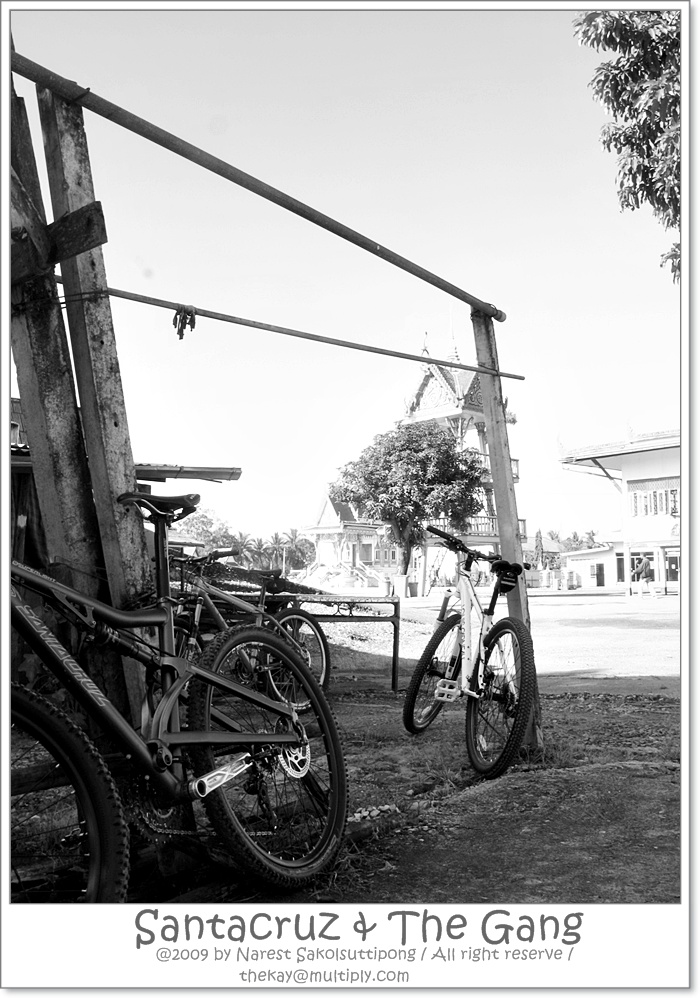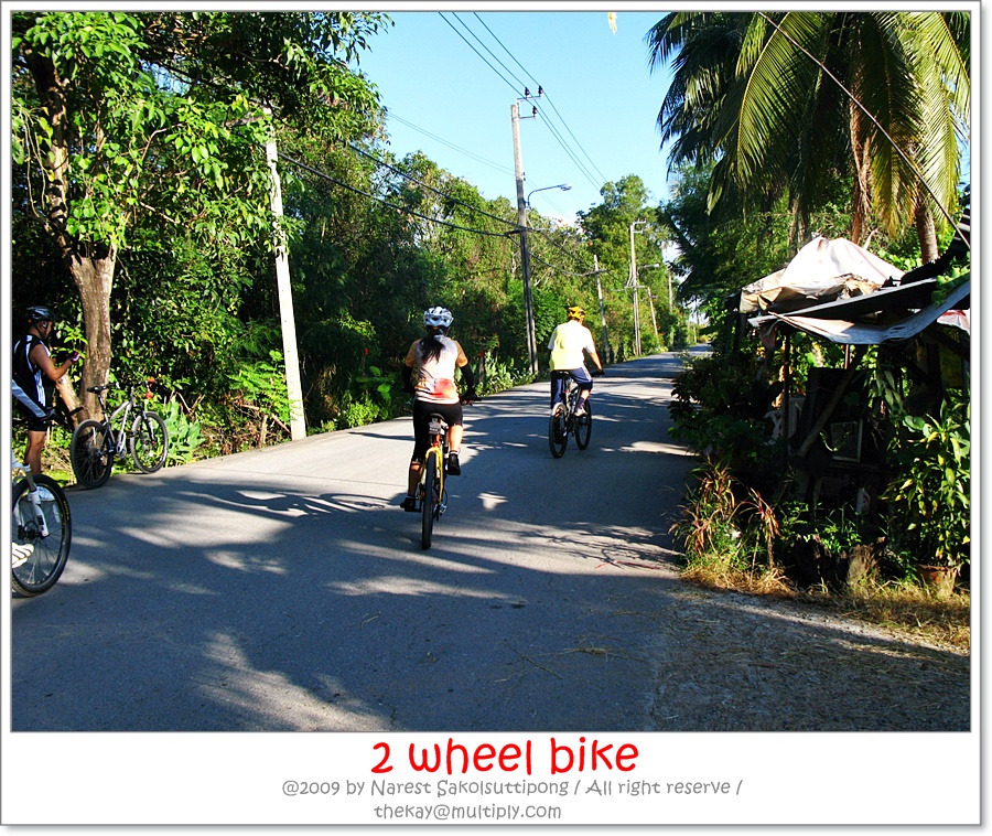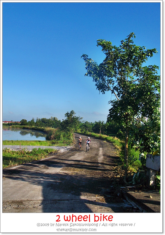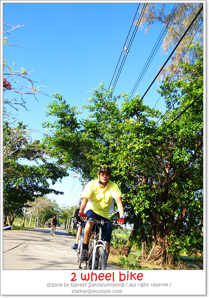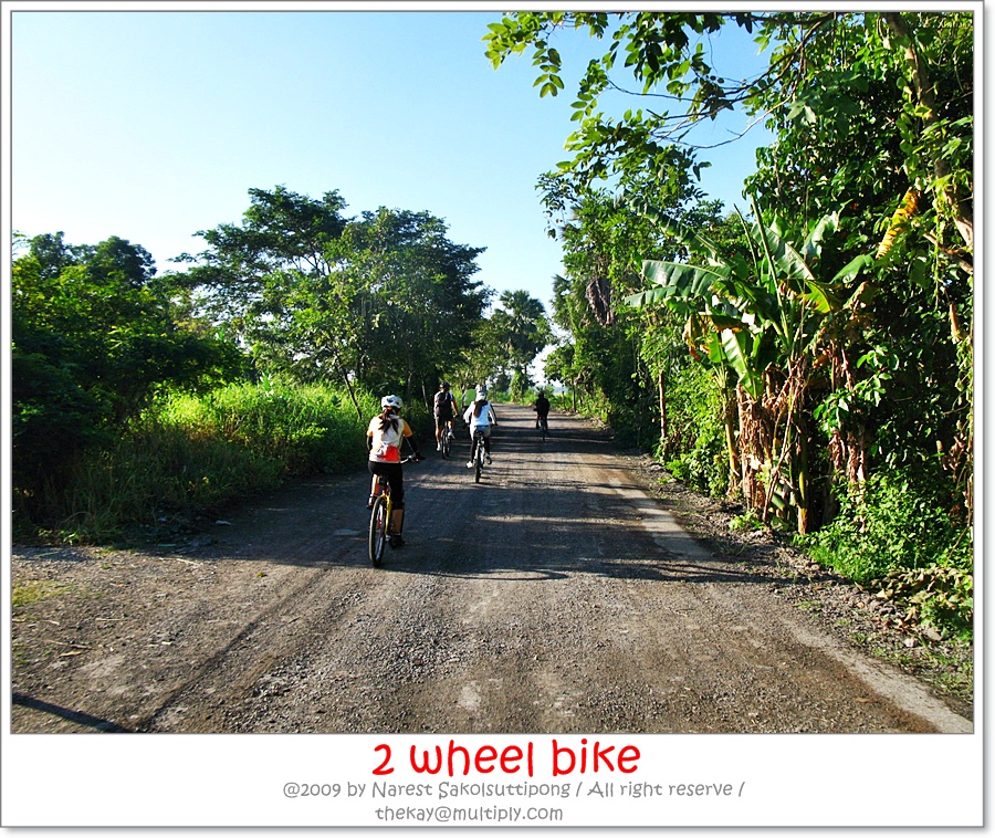 แค่อ่านหัวข้อกระทู้ พวกนักปั่นน่องเหล็กอาจหัวร่องอหาย โถ แค่ 30 กม. เพราะเห็นพี่ๆกลุ่มใหญ่ๆเขาว่ากันเป็น 100 กิโลเมตรขึ้นไป แต่...ช้าก่อน ผมมือใหม่วัยไม่ซิง จะรายงานเป็นทริปยาวๆ ก็ยังไม่เคยไป เริ่มขยับกันทีละ 5 กม.ไปเรื่อยๆ หุหุ แค่นั้นก็เล่นเป็นหมาหอบแดด ในที่สุดก็เริ่มอยู่ตัว และถึงแม้เราจะเริ่มขยับวางโปรแกรมจะไปปั่นที่ต่างจังหวัดกันบ้าง แต่ทว่าผมยังชมชอบเส้นทางหลังบ้านพี่มาณพ รุ่นพี่ที่ชักชวนผมมาปั้นจักรยานก่อนจะปั่นนั่นแหละ เพราะเราเหมือนกันอย่างหนึ่งคือ ปั่นในเมืองแล้วจะมีปัญหากับการหายใจ จะว่าเหม็นควันรถก็ใช่เลยครับ แถมที่สำคัญยิ่งกว่านั้นคือ ปั่นกับคนที่เป็นทั้งพี่และเป็นทั้งเพื่อน จะให้ความสำราญใจเป็นพิเศษ มิพักเอ่ยถึงเรื่องราวไร้สาระอื่นใด