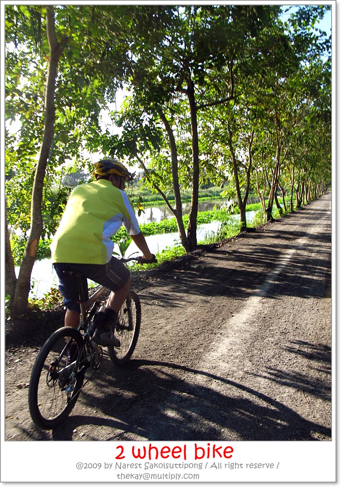 เส้นทางหลังบ้านพี่มาณพ ตลอดเส้นทางเสมอเหมือนได้ปั่นจักรยานอยู่แถวๆต่างจังหวัดอันห่างไกล นานทีจะมีรถวิ่งมาสักคัน สองข้างทางขนาบไปด้วยลำคลองบ้าง ทุ่งนาบ้าง ขณะที่มวลหมู่นกปากห่าง นกกระยาง นกเขา ฯลฯ ชุมนุมกันเต็มไปหมด และยังได้เห็นวิถีชีวิตของผู้คน ทำให้อารมณ์ตลอดการปั่นจะมีความสุขมากครับ เส้นทางราดยางสลับกับเส้นทางลูกรัง มีหลุมบ่อ มีสะพานข้ามคลองสูงๆ บางทีก็เข้าไปซนกันในบ่อดิน ทำให้การใช้เกียร์ครบรสมากขึ้น