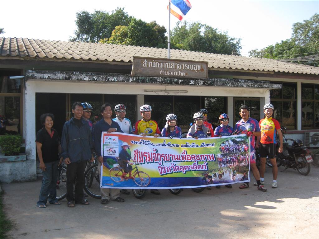 เรามารวมตัวกันที่หน้าอำเภอน้ำปาดเพื่อจะปั่นไปภูสอยดาว