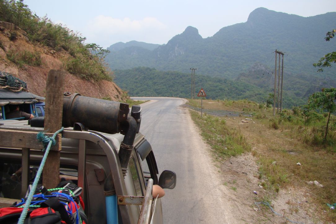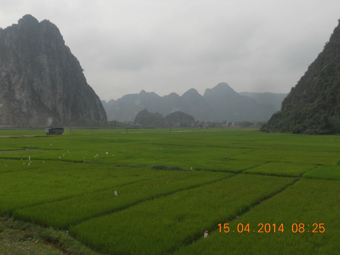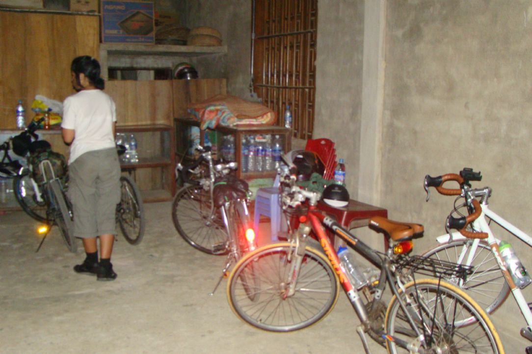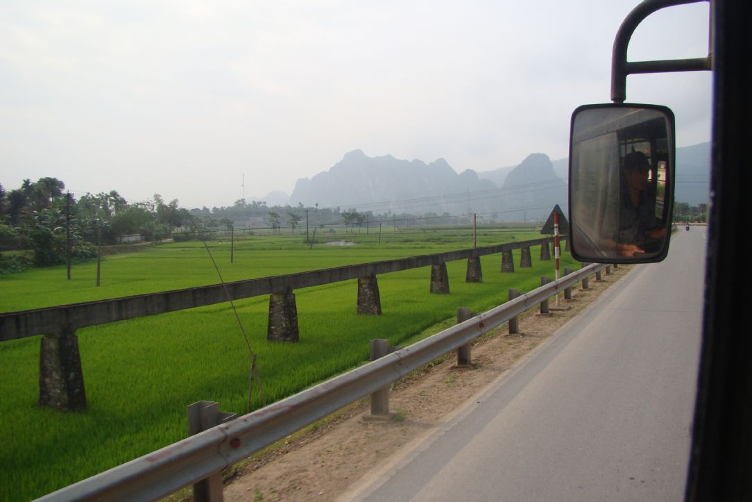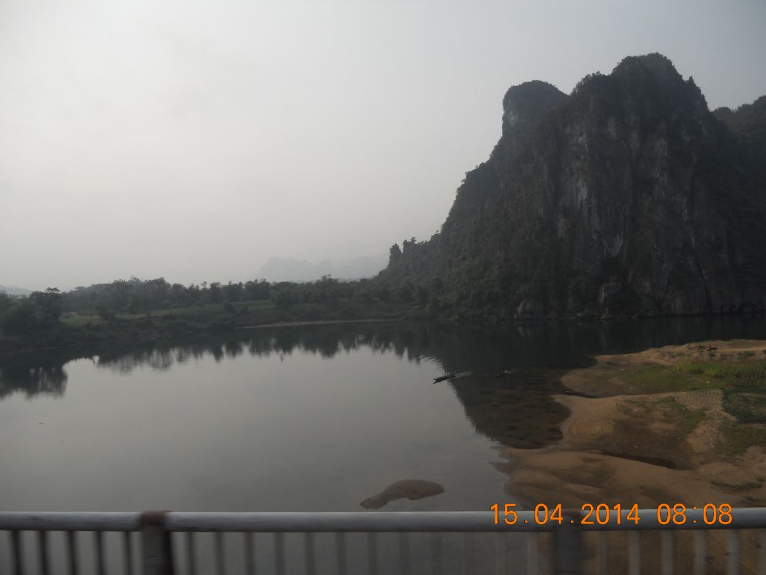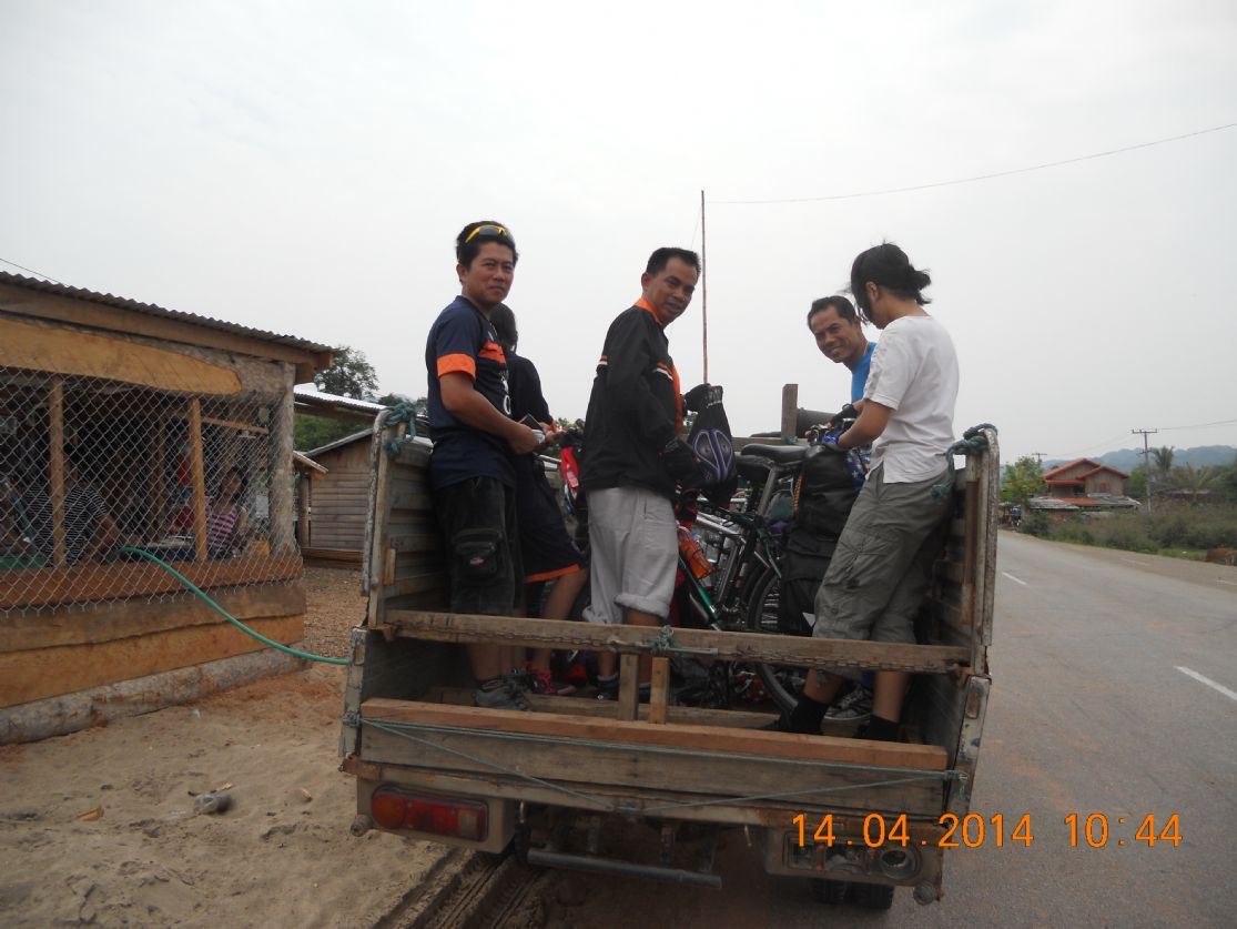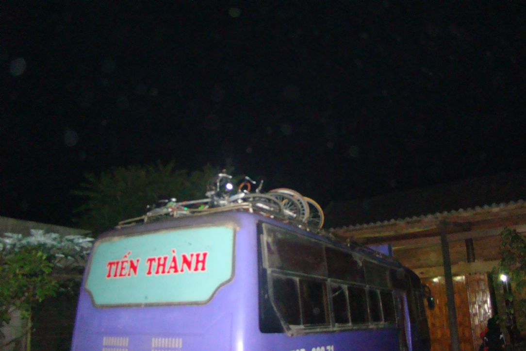 เมื่อคืนตอนกินข้าวเห็นรถคันนี้จอดอยู่ มีตัวหนังสือเขียนว่า Dong hoi ซึ่งเป็นจุดหมายปลายทางของพวกเราจากที่นี่ไปอีก 125 กม.เลยสอบถามดูปรากฏว่าเป็นรถประจำทางไปที่นั่นจริงๆปรึกษากันว่าขึ้นรถไปดีกว่า เกรงว่าถ้าปั่นไปกันน่าจะต้องใช้เวลาสักสองวันเพราะเส้นทางไปตามเขาเหมือนเมื่อวาน เลยใช้วิชาย่นระยะทางเหมือนเดิมกลัวเวลาไม่พอ 555