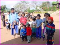 พอตกสายๆ เราก็เชิญผู้ใหญ่บ้าน และเด็กใน หมู่บ้านมารับของที่หลายคนเอาไปบริจาค
