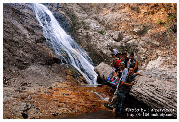 ครับที่หมายปลายทางของเราครั้งนี้เป็นน้ำตก ในผืนป่าเมืองกาญจที่เราได้รับรู้มานาน พอสมควรแต่ไม่เคยได้ไปสำผัสสักครั้ง หรืออย่างน้อยก็ไม่ค่อย ได้เห็นรูปน้ำตกนี้ชัด ๆ ผ่านโลกไซเบอร์ที่เราคุ้นเคยอยู่ทุกวัน การเดินทางครั้งนี้ผมได้ รายละเอียดที่หมาย และสภาพเส้นทาง จากออฟโรดรุ่นเก๋าที่ผ่านประสบการณ์มากกว่าพวกเรามานาน เป็นนักออฟโรดรุ่นเก่า ท่านหนึ่งที่พวกเราเคารพ และนิยมชื่นชอบอยู่ในใจ ในน้ำใจที่แกมักจะมอบให้รุ่นน้อง อย่างเราไม่ว่าที่พัก ให้พักพิงหรือข้อมูลเส้นทาง ที่อธิบายให้อย่างเข้าใจ เสียงอธิบายสำทับ ในสายยังคงยืนยันจนถึงเช้าวันเสาร์ในร้านกาแฟเล็ก ๆ ที่ตลาดทองผาภูมิ วายซ้าย วายขวา ห้วยหน้าหรือห้วยหลัง วิ่งแล่นอยู่ในหัวผมไปมาด้วยบททดสอบ ผู้นำทริปครั้งนี้และผู้ติดตาม ทั้งคณะที่ไม่มีใครเคยไป มาก่อนรวมทั้งผมด้วย พวกเราครั้งนี้รวมตัวกันได้ 4 คันที่ทั้งหมดเป็นรถโตโยต้า โดย 3 ใน 4 คัน อายุอานามรวมกันก็เท่ากับคนชราคนนึง พอดี ทั้งม้ากระโดด (LN36) หนูขาว (LN65) และ กระทิงโทน (LN106) แต่ยังดีที่มี D4D สด ๆ อย่างเสือซ่ามาคอยพยุงปีกสามเฒ่าอย่างเรา มากไปกว่านั้นเรายังได้อดีตประธาน อย่างจิงโจป่า และเนว์มือเก๋าอย่างพี่แดงมารวมทริปที่สองของเราปีนี้