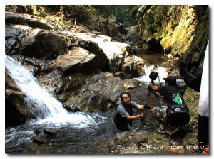. ครับเราคงมาได้ไกลสุดแค่นี้สำหรับทริปวันนี้เมือตะวันเริ่มบ่ายคล้อยลงไปทุกที อุปสรรคแรกของผมก็คือ ต้องวินช์หลังดึงเจ้าหนูขาวขึ้นจากลำห้วยที่มีตลิ่งชัยเกือบสองเมตร ขึ้นไปตะพักครึ่งคันเพื่อหาจุดเหมาะ ๆ ลงมาเชื่อมกัน พวกเราใช้เวลาไม่นานก็เชื่อมคันชักคันส่ง เจ้าหนูขาวให้กลับมามีฤิทธ์อีกครั้ง แต่เพื่อความไม่ประมาท พวกเราเดินเท้าล่วงหน้าเข้าไปอีกพอสมควร จึงสรุปเป็นตรงกันว่า ในละแวกนี้ไม่มีที่ไหนที่น่าพักมากกว่าห้วยทรายที่มีแก่งน้ำใส และหาดทรายที่กว้างขวางพอสมควรสำหรับเป็นที่พักหลับนอนของเราในค่ำคืนนี้