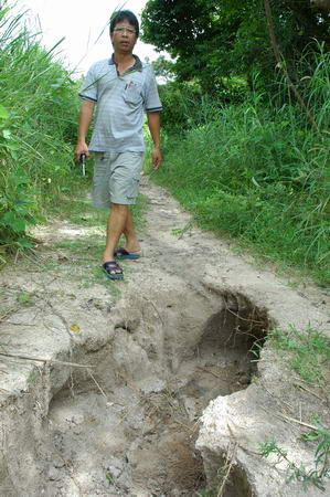 เดินไปนิ่มๆ เหลืออีกแค่เมตรเดียว "เจี้ยก...ธรณีสูบ" ข้างซ้าย ทรุดลงไปทั้งหน้าและหลัง