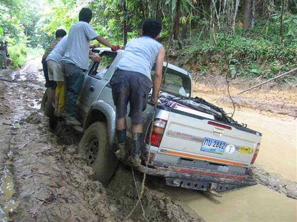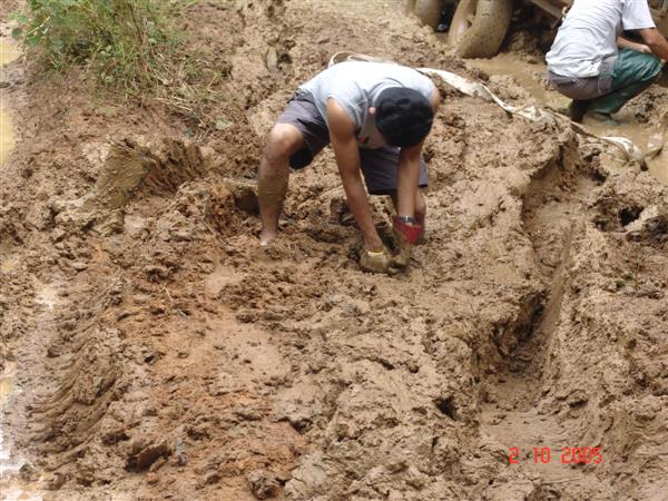 อ๋อ.รถมันจมลงไปขนาดนี้ ดินเหลวมาก...