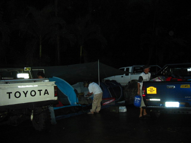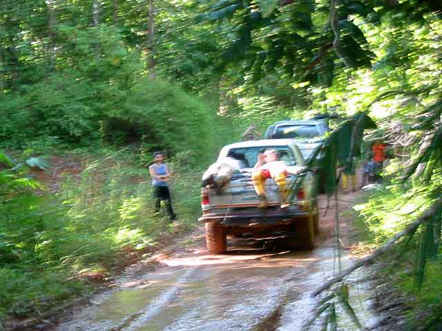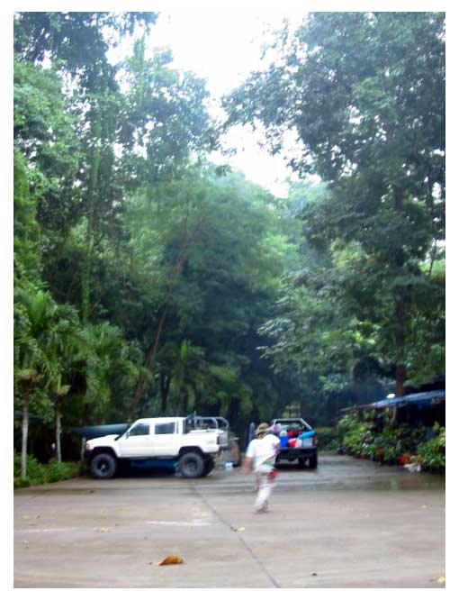 เรานัดเจอกับกลุ่มอาจารย์ ที่เคยประสิทธิประสาทวิชาให้ที่ตัวเมืองกาญจนฯ ตลอดทางจากกรุงเทพ ถึง กาญจนฯ ฝนตกตลอดทาง จนทำให้ ไดร์เวอร์ ของเรา ชักจะถอดใจ เนื่องจากกลัวจะเข้าไปบู๊ไม่ได้ หลังจากได้พบกันแล้วก็เดินทางเข้าไปพักที่น้ำพุร้อนหินดาด โดยไปถึงก็ ตี 3 กว่า เข้าไปแล้ว ก็เลยรีบสร้างสลัม แล้วนอนเอาแรง รอกลุ่มที่จะตามมาตอนเช้า