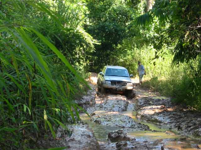 เมื่อถึง ปากทางเข้า ผู้นำของเรา ก็เริ่มบทเรียน บทแรก ปล่อยลมยางที่เติมไว้สำหรับวิ่งบนทางดำออก ให้เหลือพอเหมาะ เพื่อให้ยางสามารถให้ตัว และจับกับเส้นทางได้ดี
