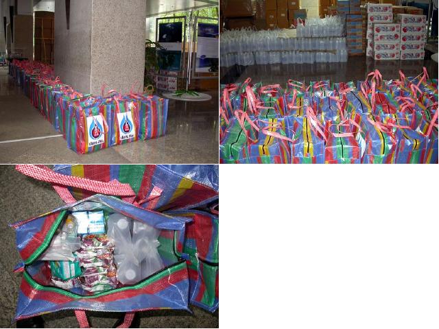 เริ่มจัดเตรียมขนสัมภาระ (ถุงยังชีพ) เฉลี่ยแบ่งปันกันไปตามรถต่างๆ ณ. ตึก ปตท. สำนักงานใหญ่ ถนนวิถาวดีรังสิต