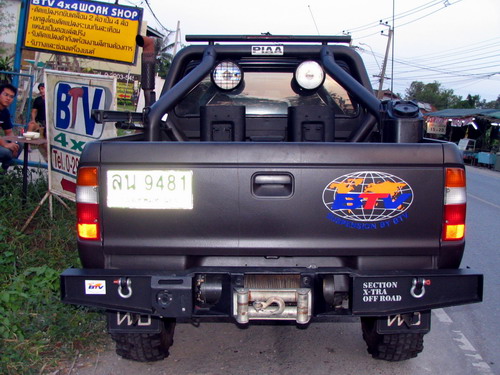 - รูปที่ 10 อยากได้ที่แขวนยางอะไหล่หลังแบบนี้มานานแล้วครับ ไม่ทราบว่าซื้อที่ไหนครับ ต้องซื้อพร้อมกันชนตามรูปหรือเปล่า ถ้าผมจะเอากันชนในรูป 5 ใส่กับที่แขวนยางอะไหล่ในรูป 10 จะได้ไม๊ครับ (รถผมมีหลังคา Carry boy คงจะคล้ายกับรถในรูป)