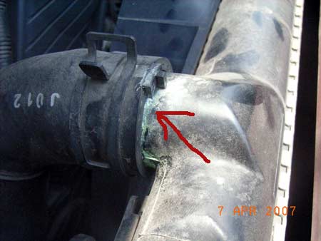 คราบขี้เกลือมาขึ้นที่บริเวณท่อต่อของหม้อน้ำ คาดว่าอีกไม่นานอาจต้องเสียตังค์เป็นแน่แท้...