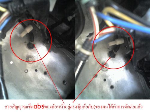สายขาดในครับช่วงระหว่างซุ้มล้อคับรองเช็คดู ของผมก็เป็นหนูกัดคับเข้าไปเช็คที่ศูนย์ๆชี้ให้ดูคับว่าขาดใน ศูนย์ว่าต้องเปลี่ยนเช็คราคามาหน้ามืดเลย 8000 กว่าบาท ผมเลยถามว่าถ้าไฟติด ABS ยังทำงานปรกติไหม ปรากฎว่ายังใช้งานได้ เลยไม่ซ้อม พอกลับถึงบ้านลองถอดออกมาแล้วตัดต่อเองก็ใช้งานได้ปรกติคับ ไม่ต้องเสียตั้ง8000 รอลเช็คดูนะคับ หาไม่ยากคับ แล้ววันหน้าจะเอารูปมาลงใหเดคับ