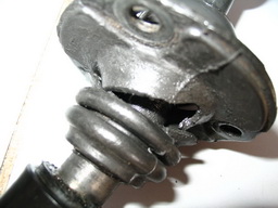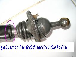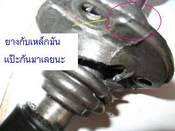 สังเกตุยากนิดนึงครับ...เพราะว่าน้ำมันมันไม่หยดลงพื้นเวลาจอด ต้องมุดไปใต้ท้องสังเกตุคราบน้ำมันที่เยิ้มออกมาครับ...ถ้าให้ชัวร์ ก็ต้องถอดคอนโซลกลางออก แล้วถอดน็อต ยึดยางกันฝุ่นออกยกขึนมา ถ้ามีไฟสนามหรือไฟฉายให้ส่องดูครับถ้าเป็นอย่างในรูปก็เปลี่ยน หรือถ้ายางไม่ขาดแต่มีน้ำมันเยิ้มออกมาอาจเป็นแค่ประเก็นครับ...ถอดมาดังรูปด้านบน แล้ว..จัดการกับมันโรด.ด.ด..คงไม่ต้องบอกนะครับ....ว่าต้องทำยังไง...อิ.อิ.อิ..!!!.