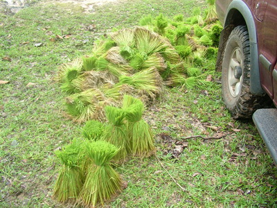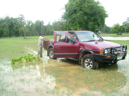 ขนต้นกล้าลงท้องนาครับ เพราะอายุมากแล้วเลยต้องไส่เกียร์ 4 Low ลงลุยครับถ้าหาบต้นกล้าลงไปเองมีหวังเป็นลมแน่ๆ