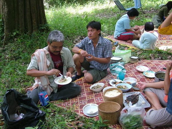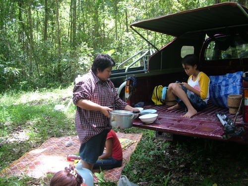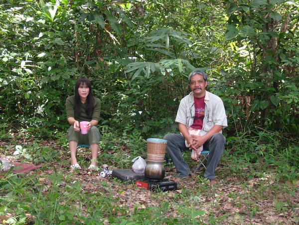 ครอบครัวคุณเรวัติ ชมรมคนท่องไพรสกลนคร กำลังนึ่งข้าวเหนียวร้อนๆครับระหว่างรอก็ดื่มเบียร์เย็นๆไปพรางๆก่อน