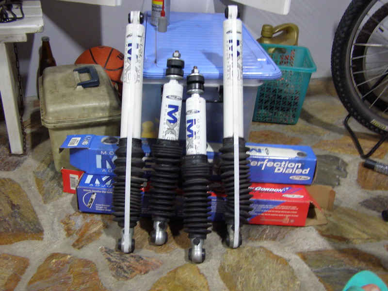 ผมมีครับ ชุดยกออโต้โฟววีล ยก 2นิ้วครึ่งถึง3 นิ้ว ราคา6,500 บาท แหนบแอดดะรี๊บ ของโปรคอม 2,500 บาท โช๊คโปรคอม MX6 หน้าหลัง หน้ายาว18 นิ้ว หลัง 25 นิ้ว สำหรับชุดยกชุดนี้ ปรับ 6 ระดับ หนึบนุ่ม อายุงาน เดือนครึ่ง ถ้าเอาหมดแถม ลิ่มแหนบปรับองศา 4 องศา ปรับ เพลาท้าย ให้กระดกตามชุดยกราคา 500 บาท