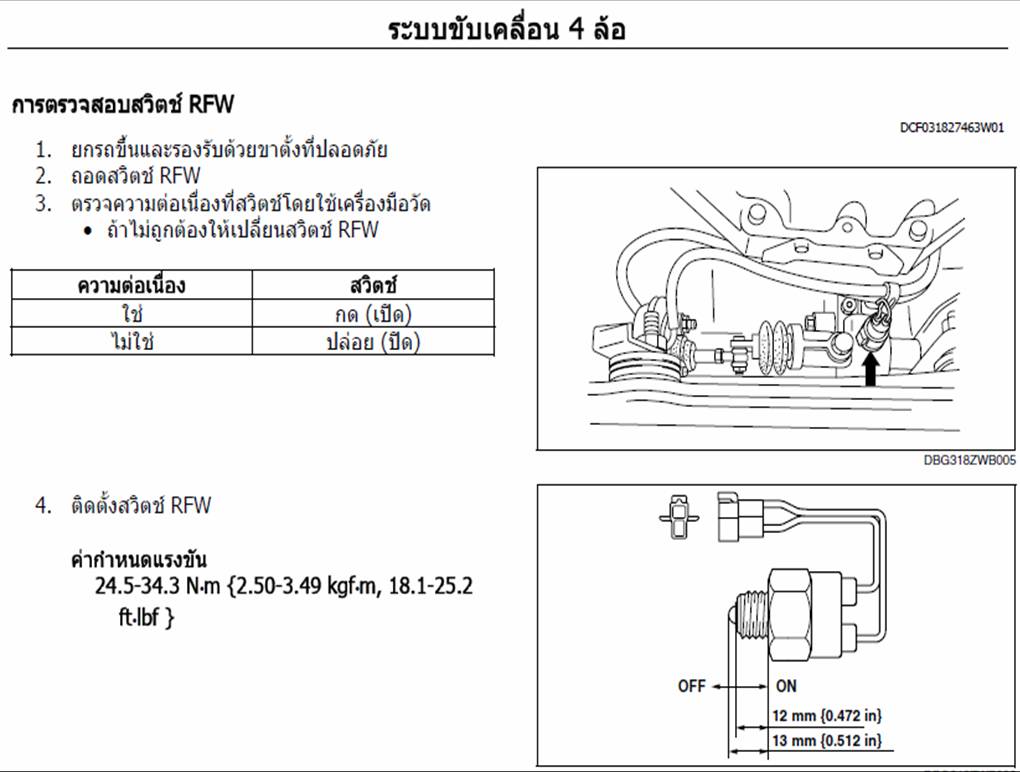 4. หากค่าตรวจสอบเป็นตามที่บอกแสดงว่า RFW Switch ไม่เสียครับ ให้ไล่สายไฟ และหลอดไฟที่หน้าปัดต่อไป