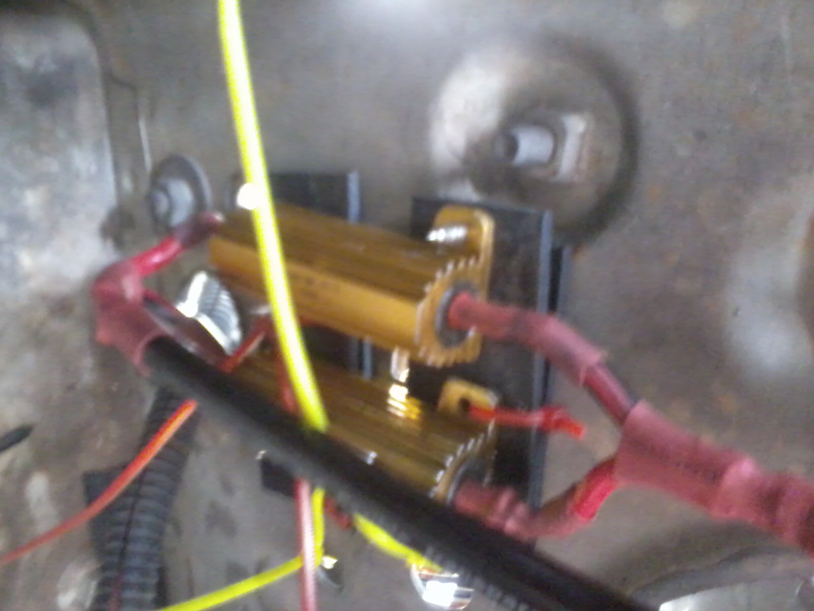 ผมใช้วิธีต่อตัวต้านทาน 0.2 โอห์ม 100 วัตต์ เข้าไปเพื่อทำให้กระแส และความต่างศักย์คร่อมพัดลมต่ำลง พัดลมจะได้หมุนช้าลง