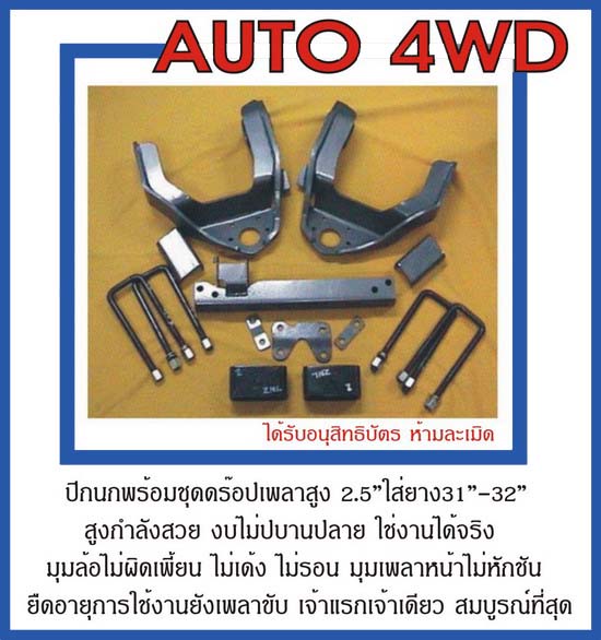 รบกวนน้า ai ลงรูปรถให้ดูหน่อยสิครับ ขอแบบเจาะๆตรงชุดยกปีกนกของ auto4w ด้วยครับ (พอดีมีหลายๆท่านต้องการยกแค่ 2-3 นิ้วครับ)